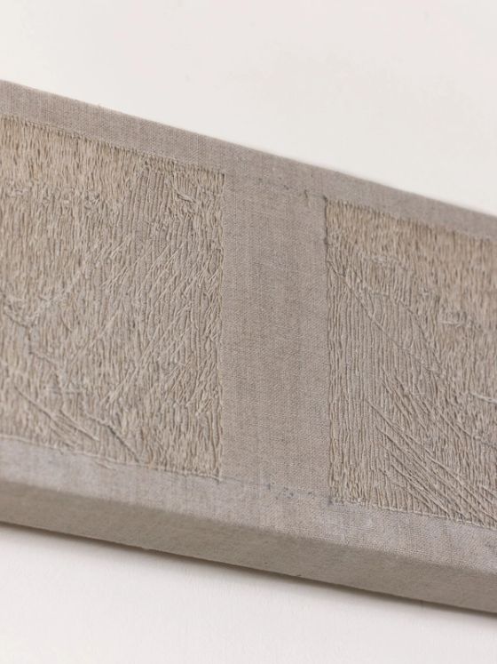 Combining embroidered linen with pigment washes and etching, Sydney-based artist Armando Chant uses techniques of erasure and negation to arrive at ambiguous, atmospheric landscapes. His work focuses on the inherent potential of the in-between, a place of imaginative engagement and a nascent state of emergence. “I’m interested in the Japanese aesthetic theory of Ma – where a space that appears empty is actually full of content and meaning,” he says. “It ties in with my interest in the Dansaekhwa movement: there is a softness to this minimalist approach, where the void is celebrated as a place where things come into being, rather than a place of nothingness.”