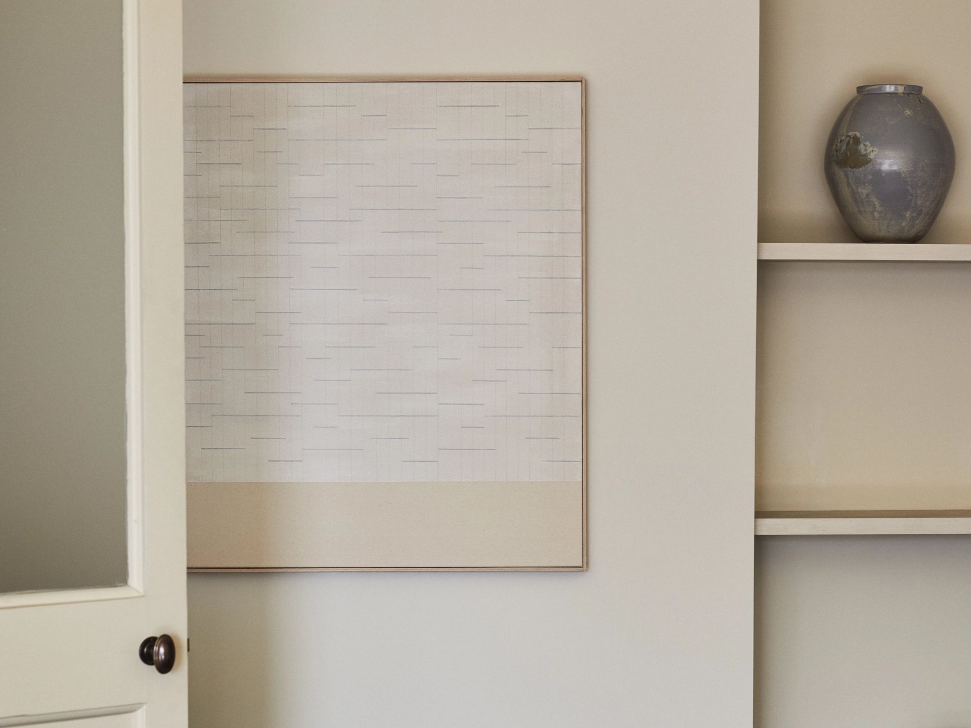 London-based artist Liam Stevens works in layered pigment washes with pencil on canvas, and constructed reliefs. His creations are composed of repeated lines and forms, creating a sense of rhythm in the negative space. “I am often working with elements that have no compositional hierarchy, as the component parts are all the same size,” he says. “I look for sets of rules, of repeated groupings or clusters, to suggest a rhythm that the viewer is subconsciously aware of, but also not aware of. There is something safe and familiar about repetition; we use it to make sense of the world around us, and our response to it can evoke deep contemplation.”