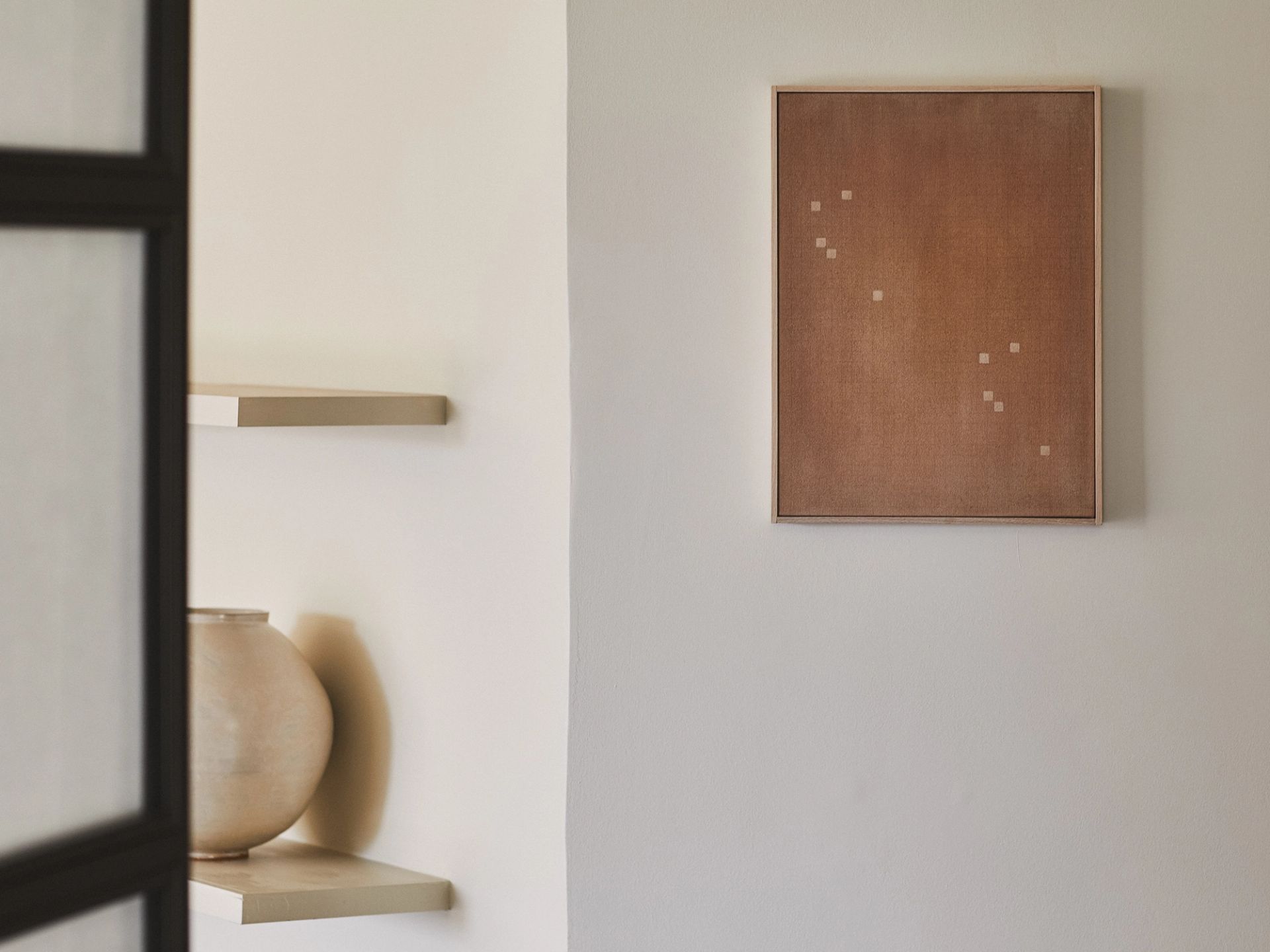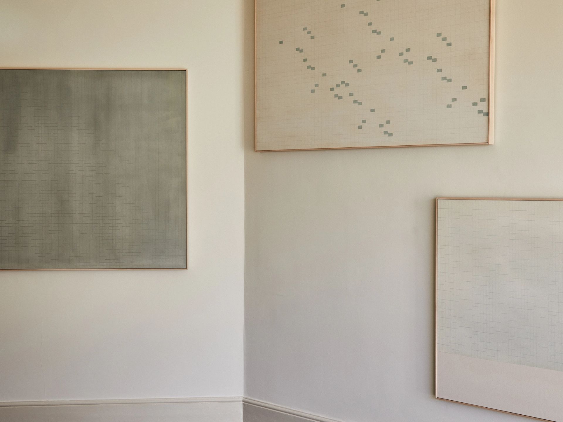 Through the implementation of repeated lines and forms, these works draw a parallel between nature’s capacity to generate myriad variations of the same object — like raindrops or leaves on a tree — and our fabricated setting, characterised by duplicate grids, structures, and intersections. This exploration extends to material and spatial considerations, where fullness is interspersed with the void; where the interval is as essential as the structures that define it.