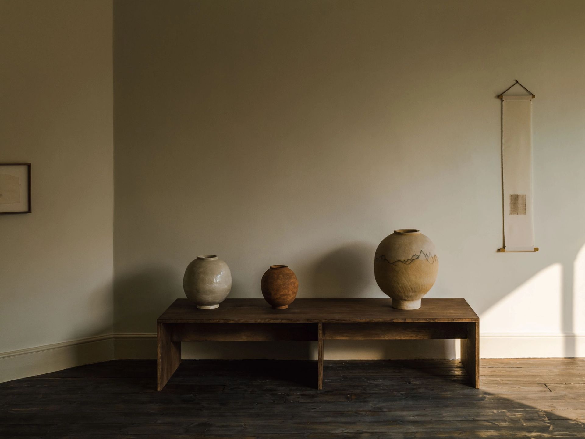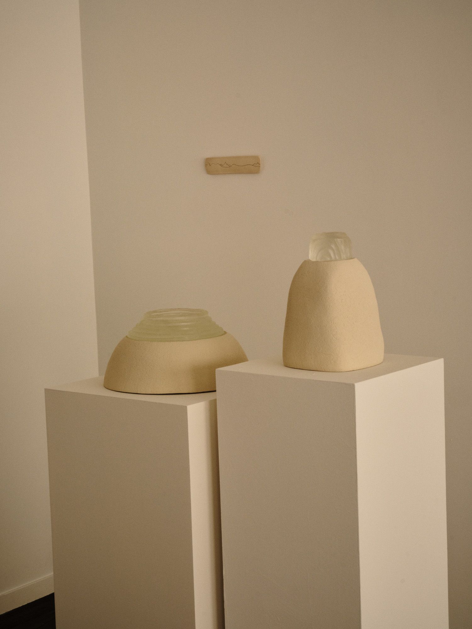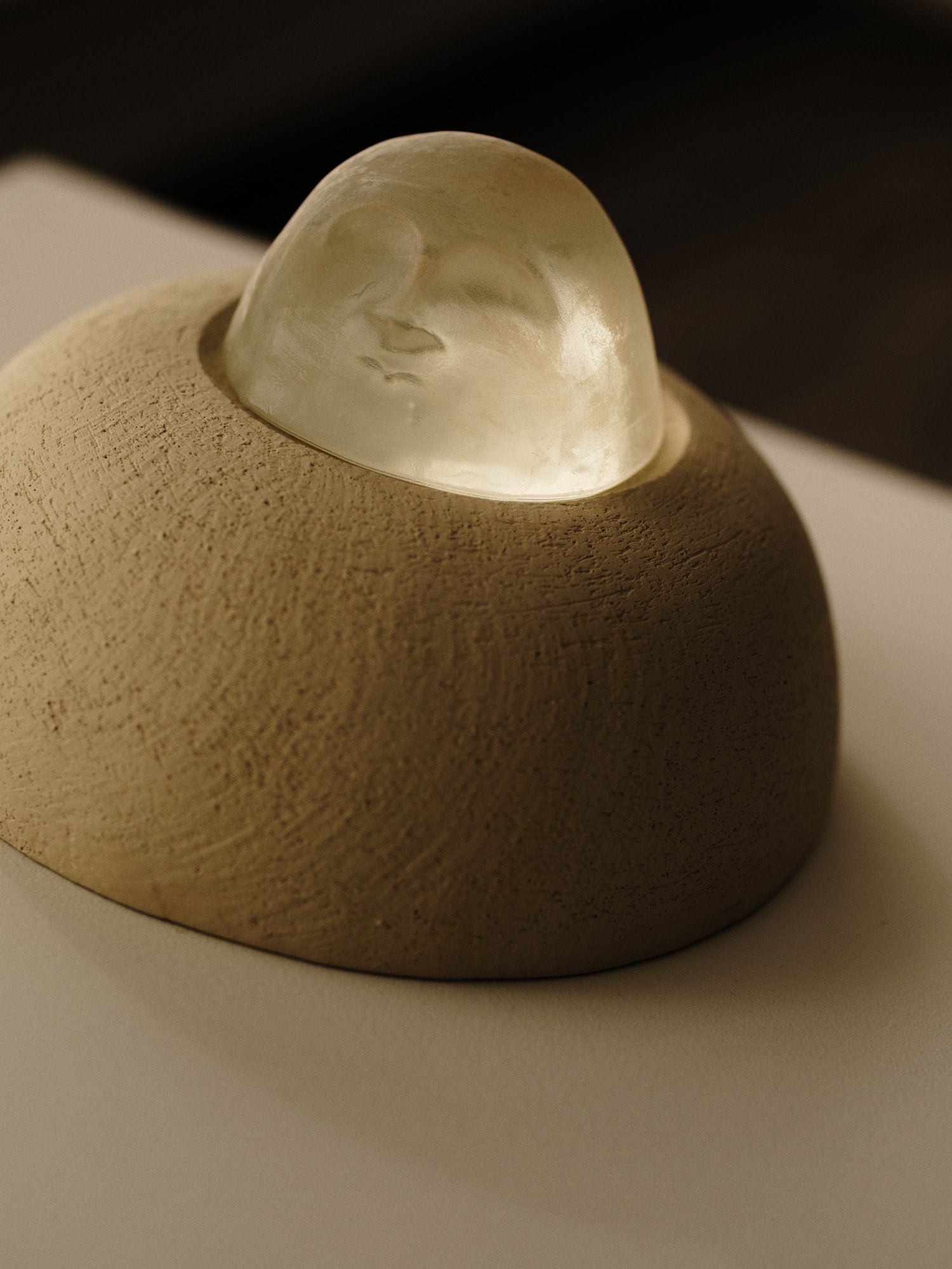 Kwon’s practice has expanded to encompass experimenting in materials other than clay, including glass. She also experiments with the traditional Korean textiles of ramie and hemp, known as mosi and sambe. “These textiles interest me because they are both derived from plant fibres, so truly reflect the soil quality, climate, and conditions of where they come from,” she says. “I am drawn to the lightweight, transparent quality of ramie for the way it interacts with light. And hemp is culturally significant to me because it has a history in Korea of being used for burial dress for the deceased, as well as for mourning clothes. I am drawn to the painstaking process inherent in working with handwoven textiles – the labour that is present in the art.”