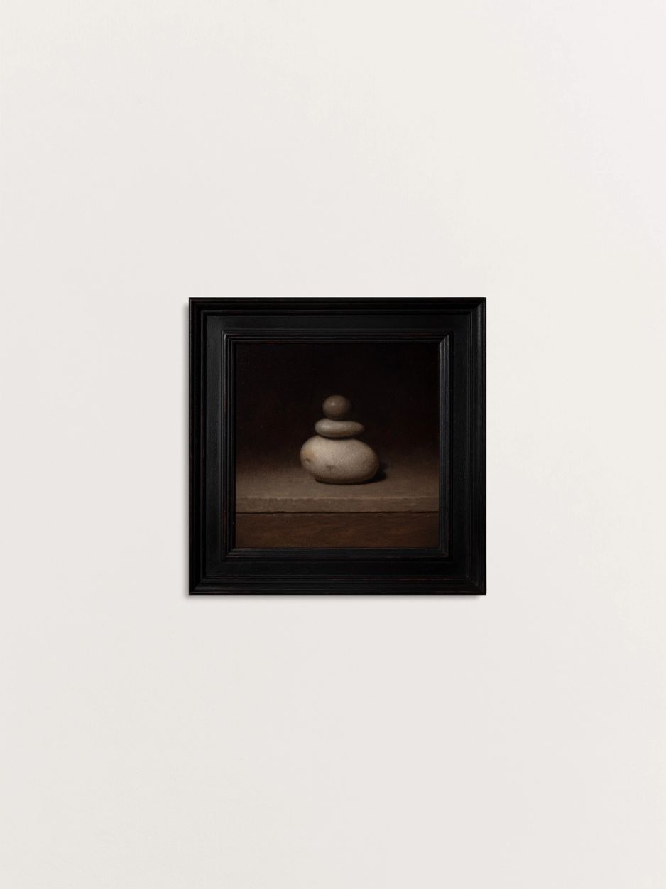 Will CalverA Tower of Pebbles (2025)framed: 28h × 28w cmOil on panel
