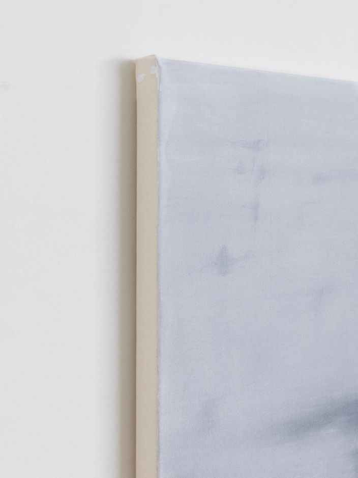 Hodge creates her abstract paintings and drawings with immediacy and intuition, working quickly and performatively to make sweeping, gestural marks. Using acrylic diluted with water on raw, untreated canvas, she often softens the surface with a brush, blurring calligraphic gestures into ethereal forms.