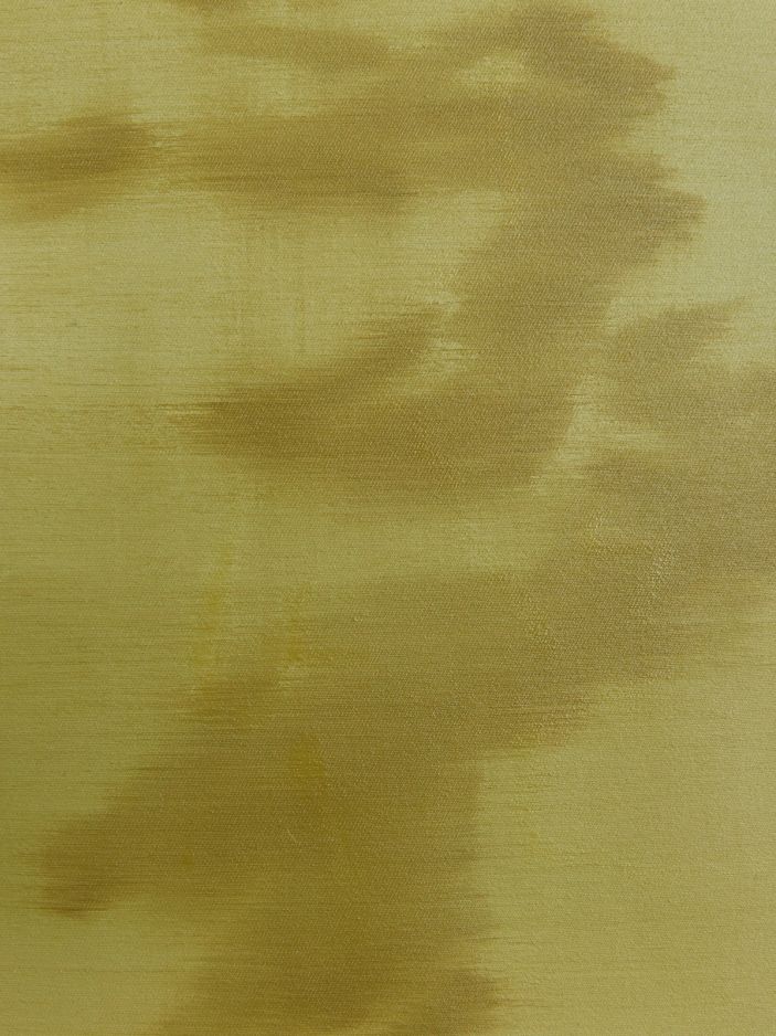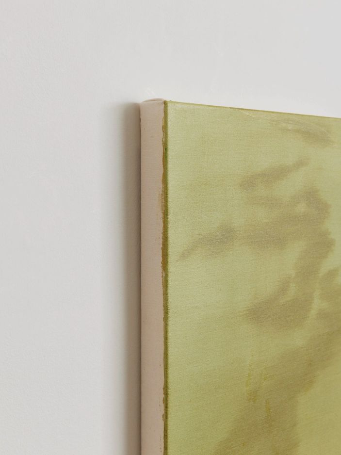 Hodge creates her abstract paintings and drawings with immediacy and intuition, working quickly and performatively to make sweeping, gestural marks. Using acrylic diluted with water on raw, untreated canvas, she often softens the surface with a brush, blurring calligraphic gestures into ethereal forms.