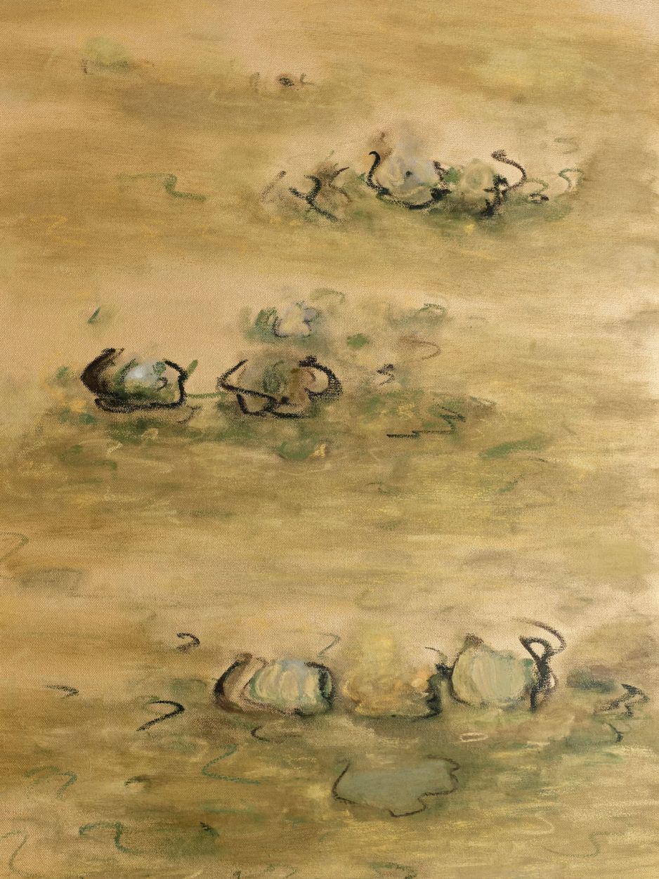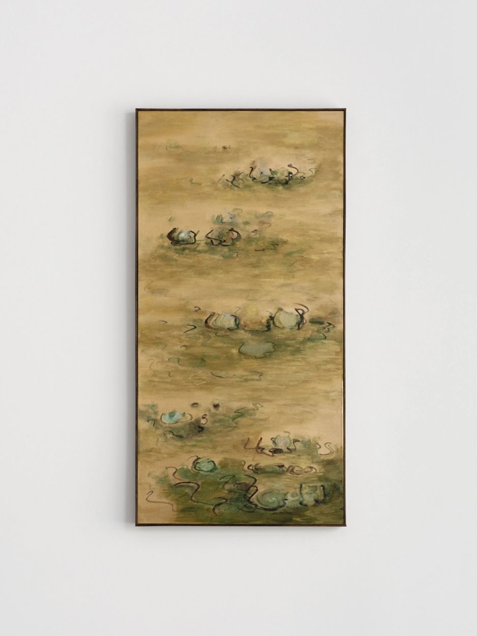 Ash RobertsNothing Gold Can Stay (2024)framed: 123h × 60w cmAcrylic, oil, oil stick, gold pigment on canvas