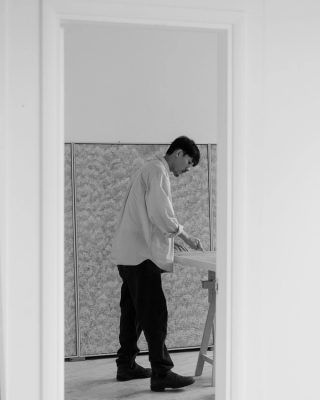Woo Byoung YunSuperposition 23-06-214 (2023)framed: 69h × 55w cmPlaster & gouache on wood panel