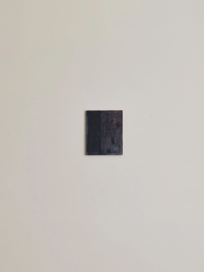 Rosemarie AubersonThe phantom of love is peeling an orange by the fireplace. D.L. (2022) 27h × 22w × 1.5d cmAcrylic on canvas