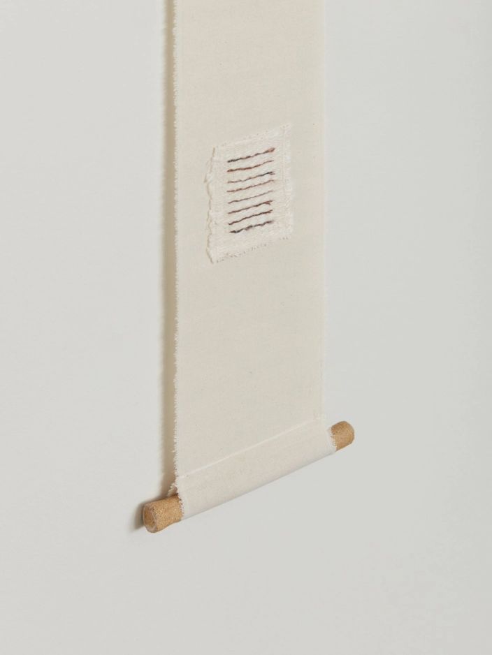 Nancy Jiseon KwonThe Sun and All Light (2022) 74h × 24w cmStoneware, cotton muslin, cotton thread, silk mohair thread