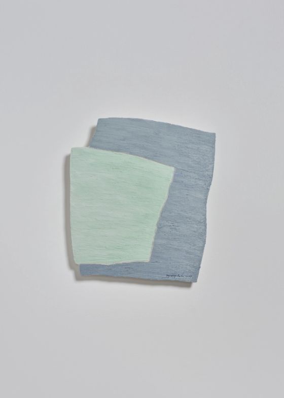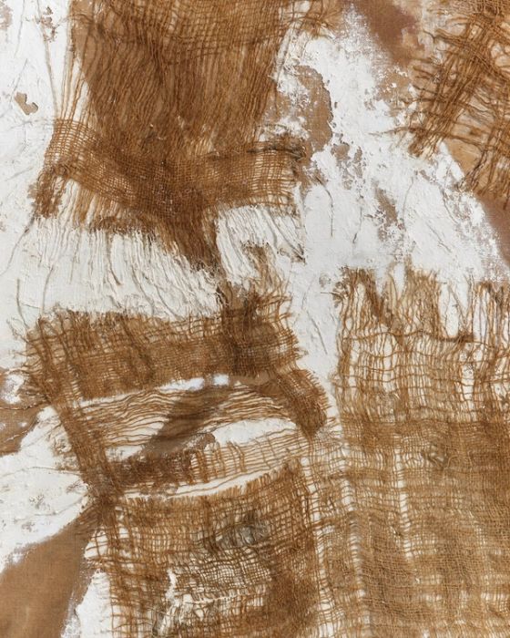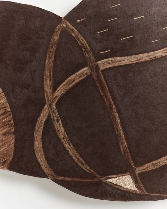 Myoung Ae LeeWork2404- Variation (2024) 68h × 101w × 7d cmCollage on shaped canvas / linen, gunny, burlap cord, oil color