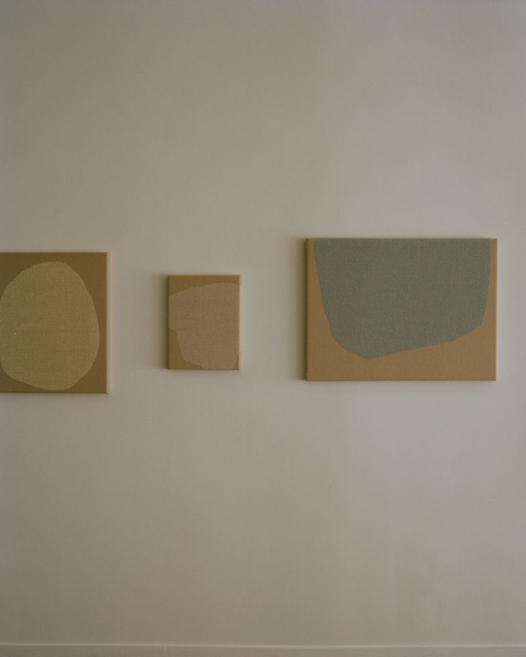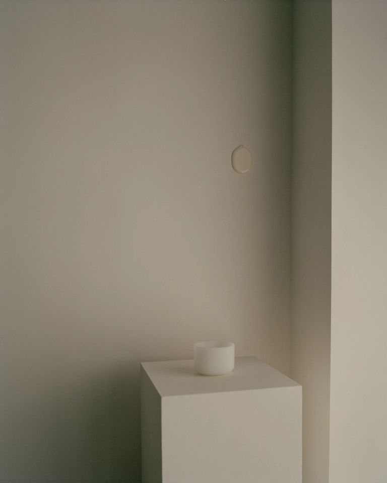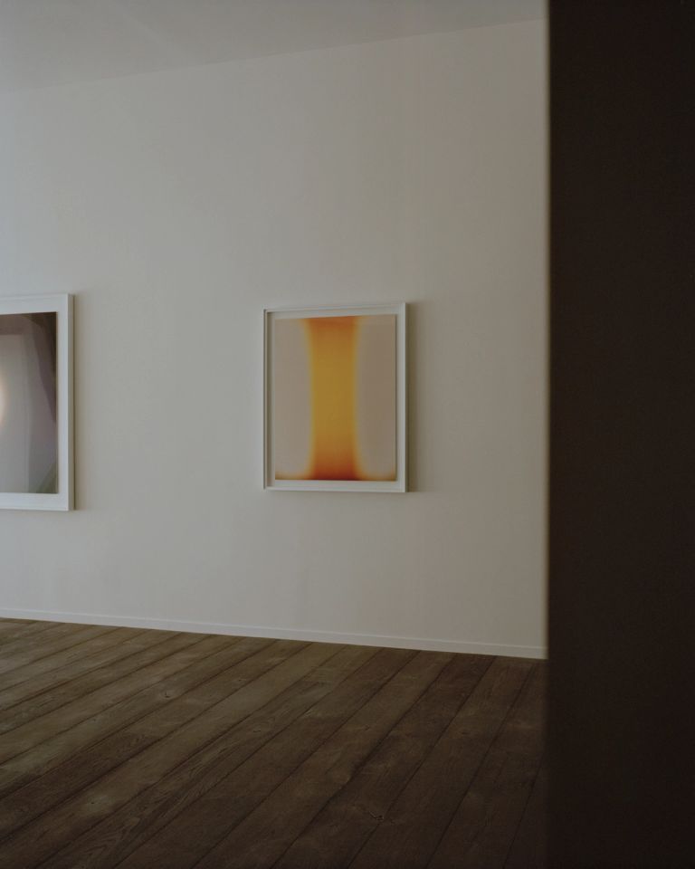 Documented in sketches and colour studies, the artist returned to her studio in Copenhagen with a new vocabulary of shapes – monolithic, organic, idiosyncratic – which became paper cut-outs or stencils, much like those used by Fabian Miller to block and guide the light in his darkroom.