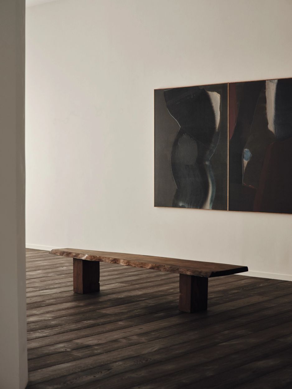 Besançon lays his canvases horizontally while he works, raised slightly above the ground. Paint is applied and washes are used to remove brush strokes and cede control to the material elements of the work. “I always want to make the best painting with the least movement possible,” he says. Choosing not to impart meaning on the completed paintings, Besançon also cedes control to the viewer: each work is titled simply with a number, denoting the scale of the piece, and allowing the viewer to experience the painting unburdened.