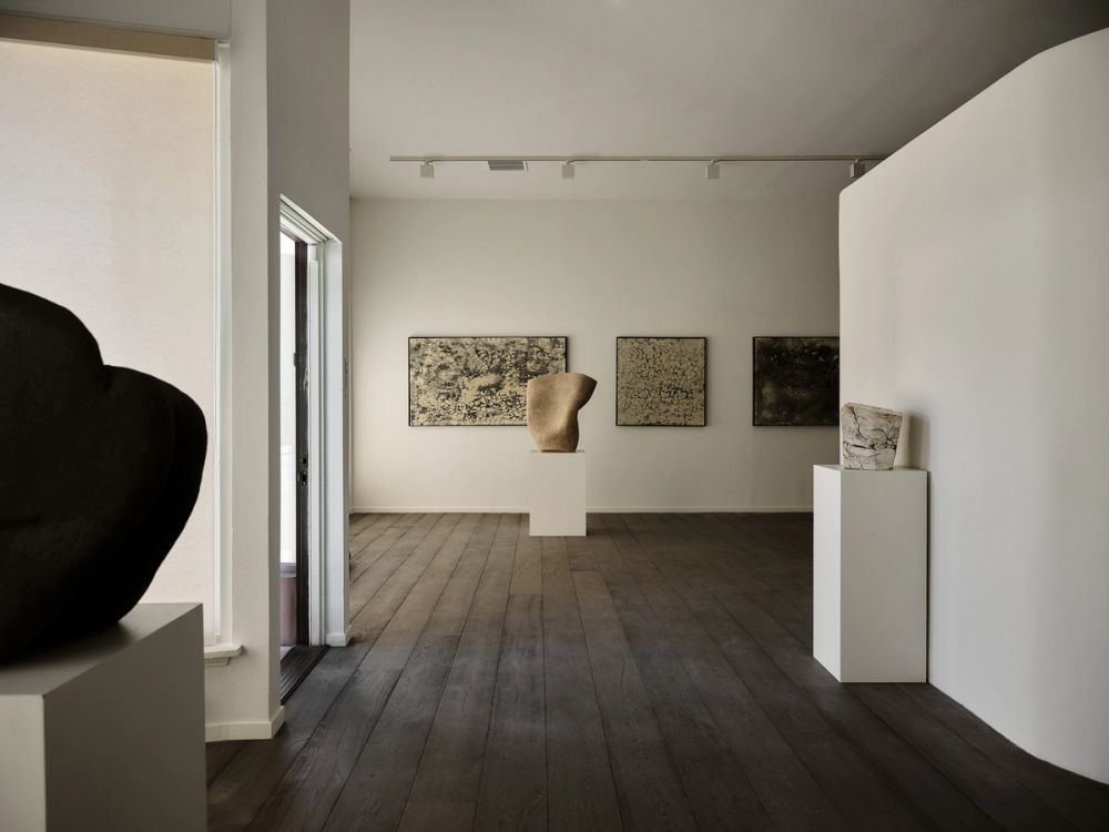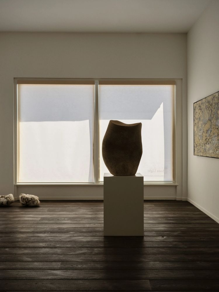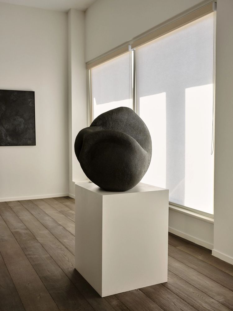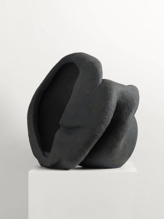 Achieving a rich, dense black, their darkness should be understood not as the opposite of light, but as its own quality of light. “The moon lives in the lining of your skin,” notes the poet Pablo Neruda – a faint, watery sheen. The same, slow light rests upon the stoneware sculptures, their faces and facets picked out of the dark as if through a haze – their presence like that of a large object, observed from afar.