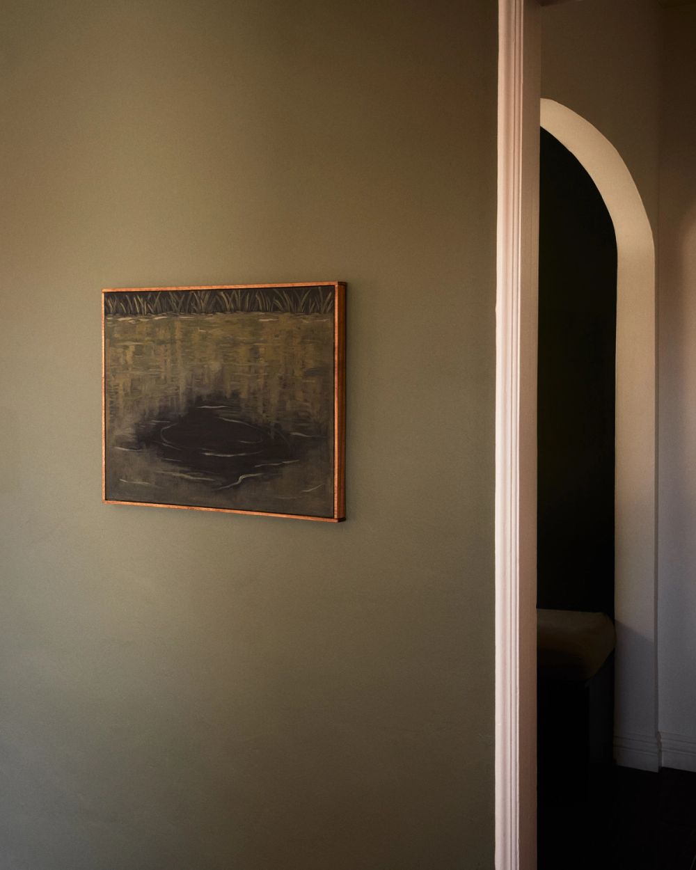Working with a restrained palette of blacks, sparse greens, yellows, and browns, Zabawa creates water from darkness, unveiling depths that invite contemplation. Influenced by land artist Andy Goldsworthy and the philosophical lens of Zen poetry — where "nature's outward expression reveals inner knowing" — these murky, beautifully chaotic ponds become mirrors for the viewer's own memories and relationship to water. In each work, Zabawa offers a space for reflection, reminding us that water, which binds us all together, has the capacity to reveal our individual sense of place and purpose.