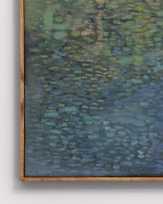In this new body of work, John Zabawa turns to water as one of humanity's most enduring symbols — revered across millennia and cultures as both life-giving force and sacred material. From the Nile's Hapi to Hinduism's Ganga, from West African Oshun to the Ojibwe water ceremonies, civilizations have honored water through ritual, offering and art. Zabawa's paintings draw from this rich lineage while carving out distinctly personal territory: these are not the manicured garden ponds of Impressionist estates, but rather, wild, prehistoric water bodies — untamed and unseen, interpretations of the Midwestern landscapes of his childhood.
