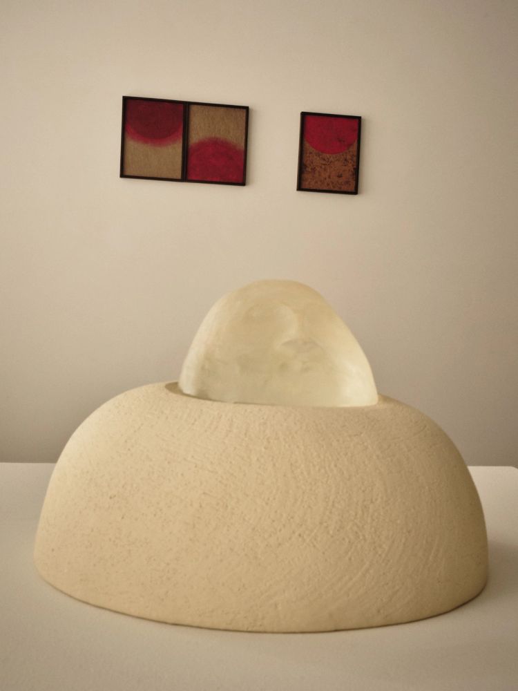Rendered in pure, powdered pigment on Korean hanji paper, Hur’s ‘Inner Knowing’ series is composed entirely of circles and horizons. Both abstract and innately representational, the circle is the sun in the sky, the moon at night, a single cell and the entire world. While this shape draws you in, pulling you into its centre, the horizon line suggests distance, a divide between here and there, near and far – opening up the vast space between the viewer and what lies beyond.