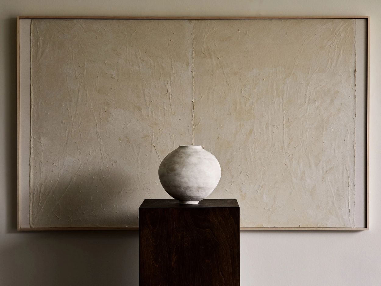 Lineage is Yoona Hur’s first solo show with Francis Gallery, featuring vessels inspired by traditional Korean forms, as well as organic ceramic sculpture, and canvas works in hanji, gesso, acrylic and glue. “There is multiplicity in the term lineage,” says Hur. “For me, it points to both traditional Korean art and craft, and the modern art movement Dansaekhwa – a distinct heritage that I deeply respect. The term also refers to nature and the environment, which is where the materiality and textural focus of my work stems from.”