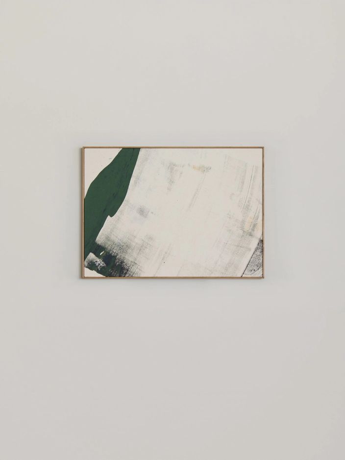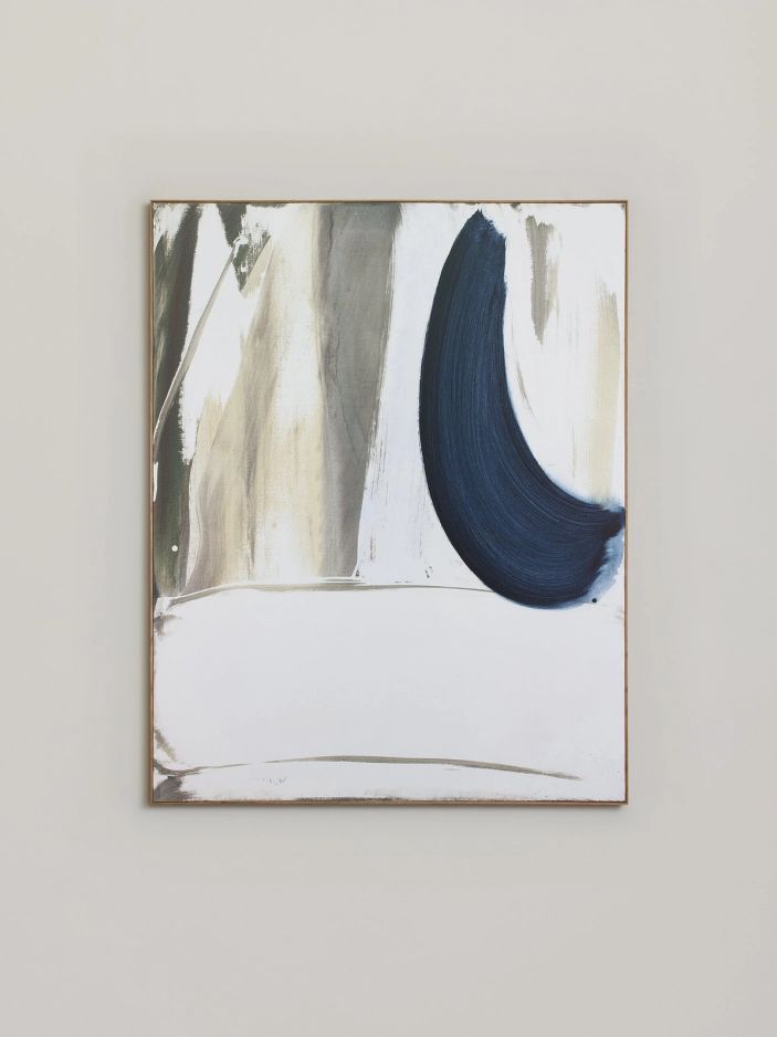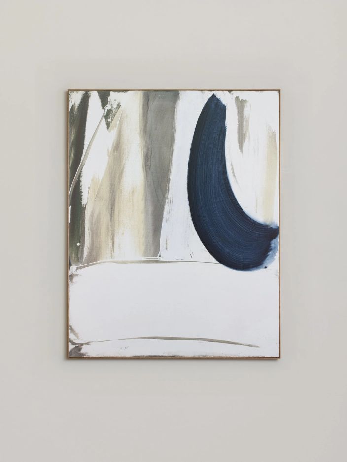 Far from figuration, these abstract landscapes are charged with a magnetic presence. They possess their own aesthetic coherence, and respond to each other from one canvas to the next. The paintings do not bear any titles, a deliberate refusal to have two languages of different natures cohabit, or to burden with meaning that which strives to awaken sensation; in Besançon’s works, one senses a dialogue taking place that is far from words.