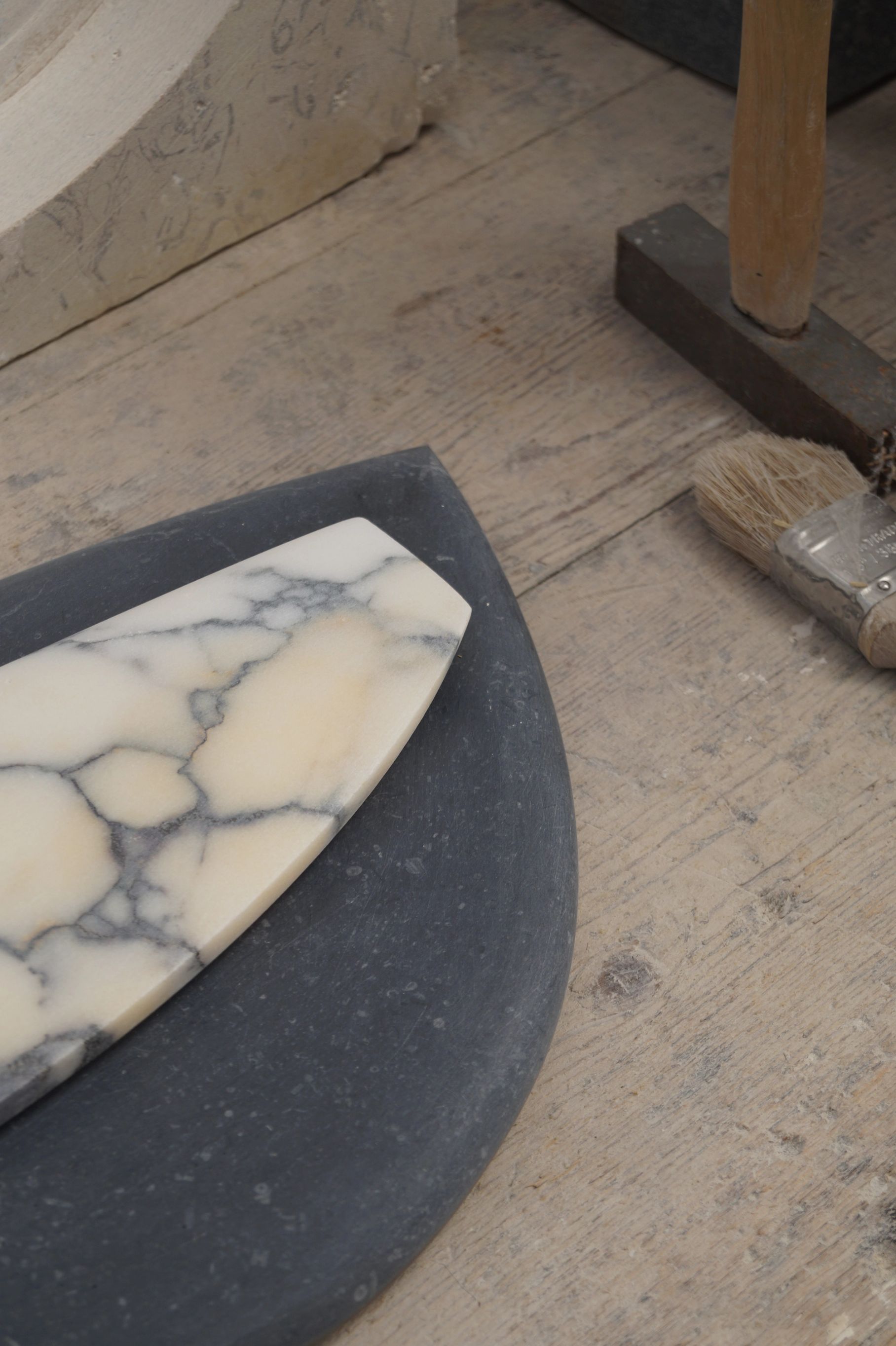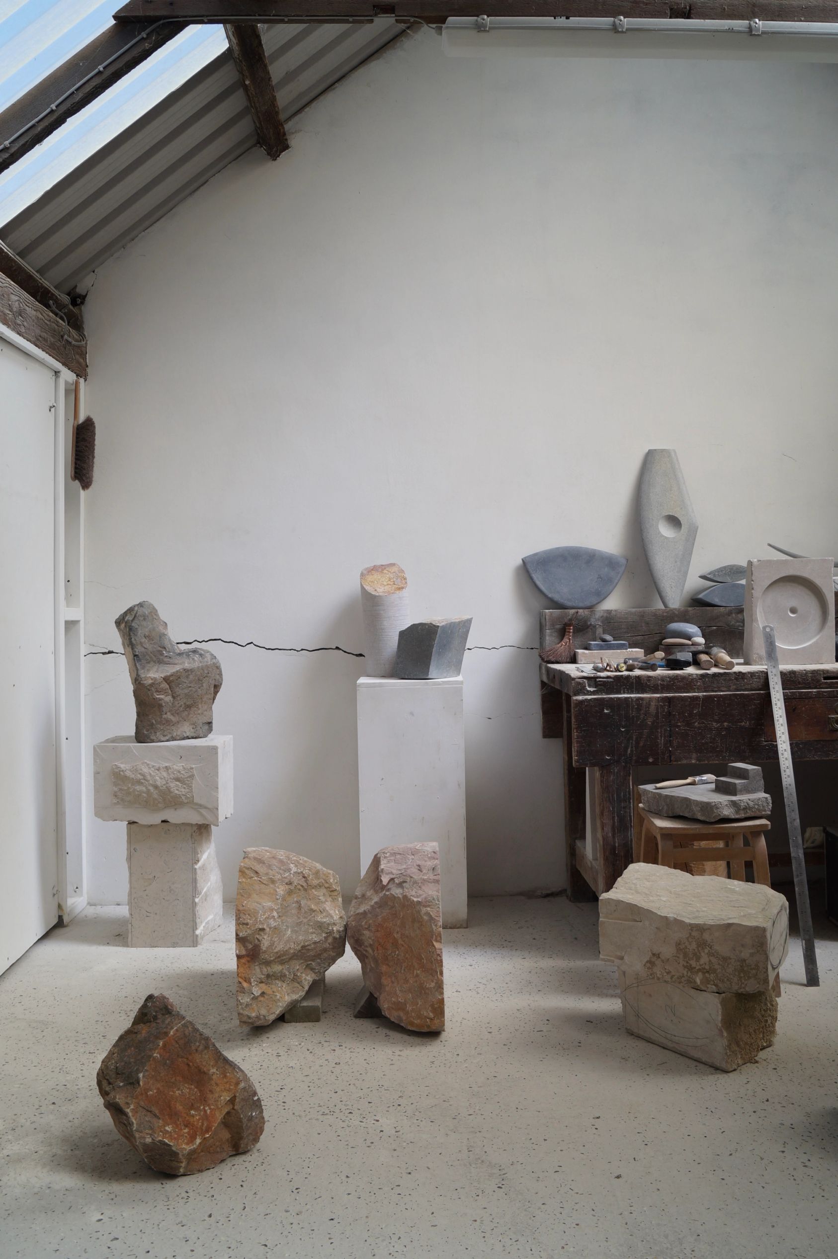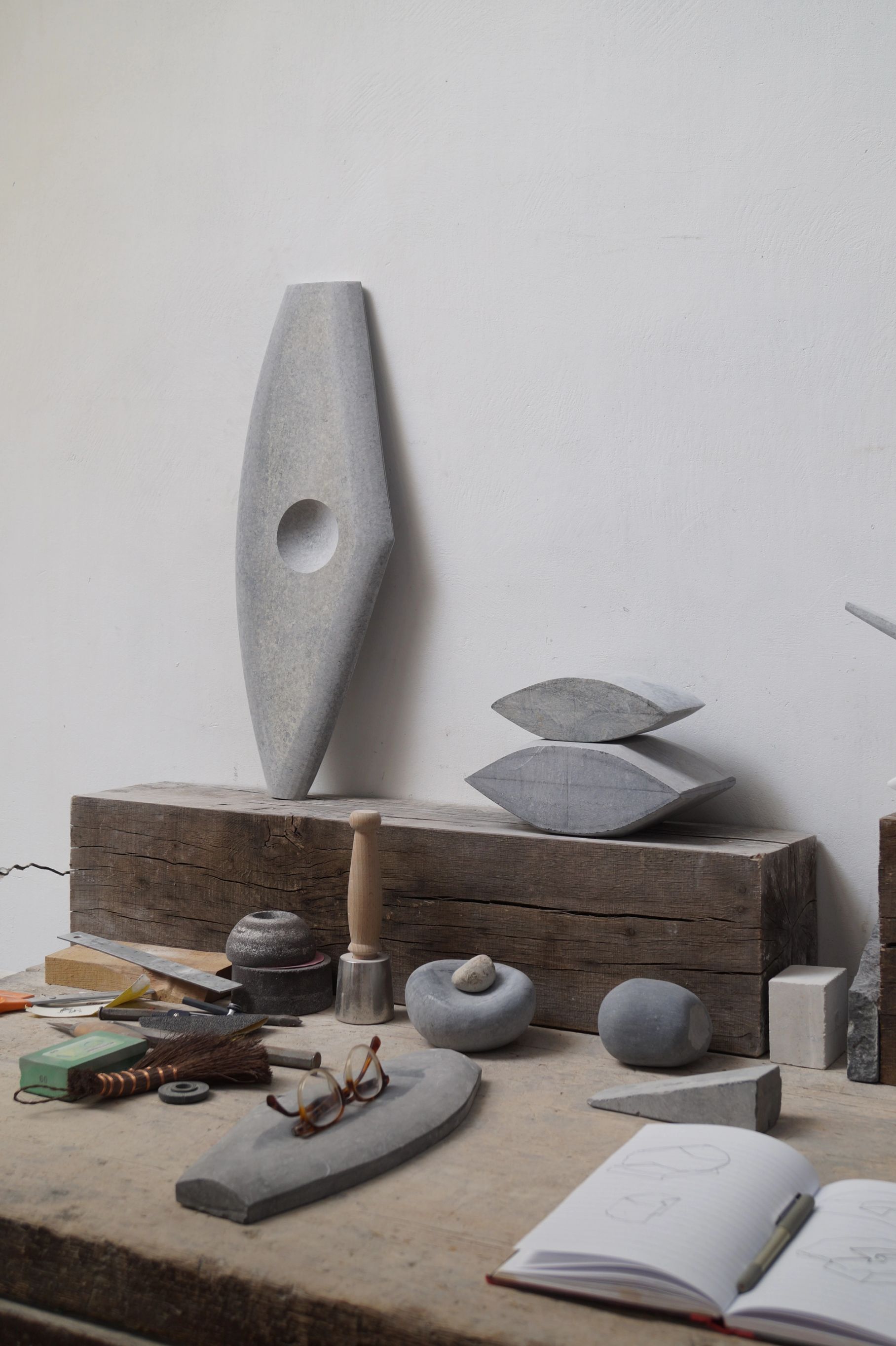 Collins studied design and craft at Brighton University, as well as at Plymouth University. He has shown his work at Kindred House in Margate, The Radford Gallery and M.A.H Gallery in London, and Make Hauser & Wirth Somerset – the first time works in stone have been shown there. His work is often inspired by prehistoric landscapes and sites in southwest England, such as stone circles and burial mounds. “Every time I drive to the southwest to source stone, I stop at a different site in Somerset or Dorset,” he says. “The general landscape is littered by these amazing earthworks.”